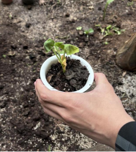 “我想体验一下把植物慢慢养大的感觉。”工程管理2201班的沈存凯同学是第一次参加绿植领养活动,他对自己和移植到自己花盆中的绿苗许下期望——希望自己在大学生活中经历风雨,成长开花。
