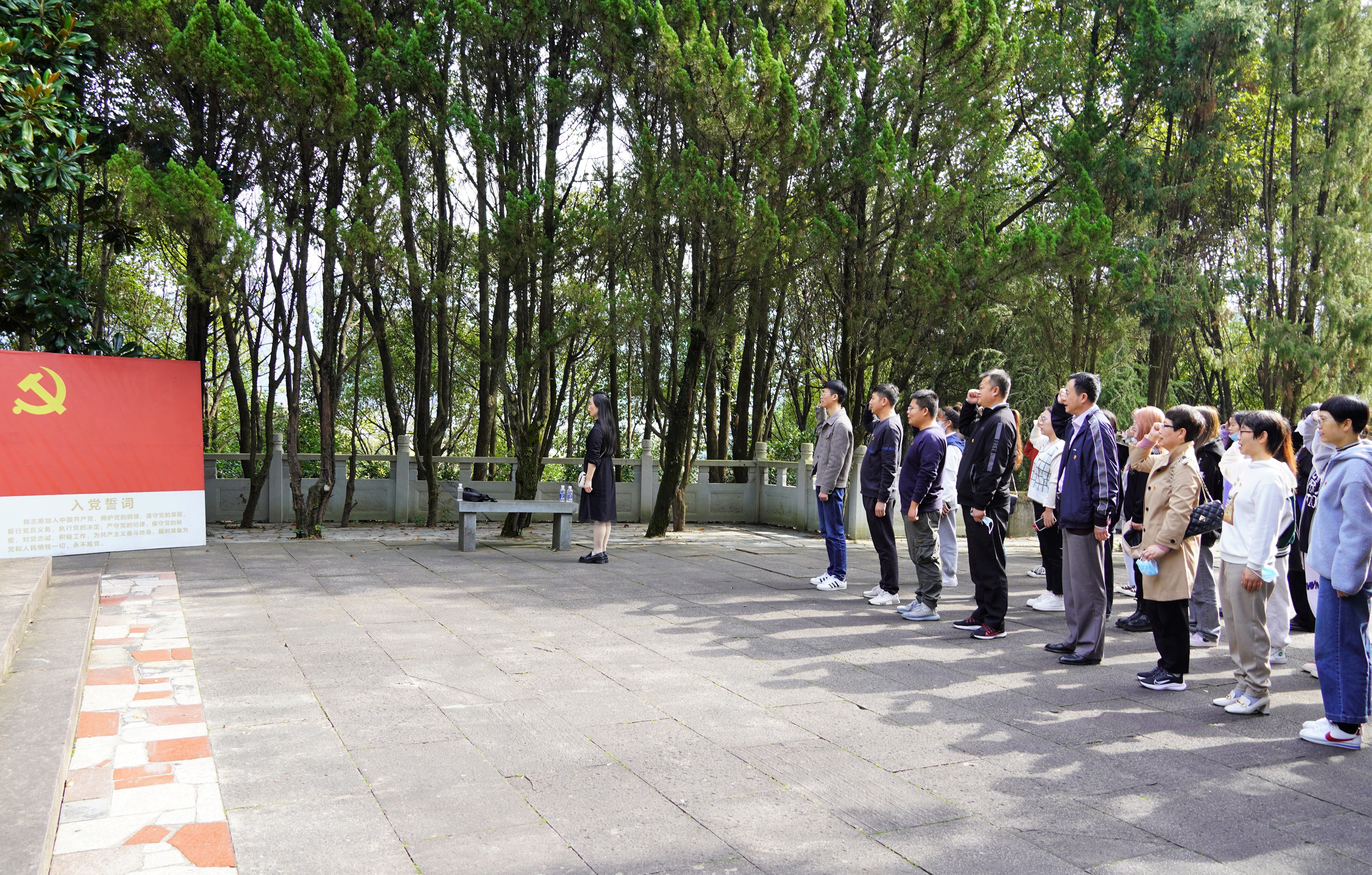 图一:党员在俞秀松烈士陵园前进行入党宣誓