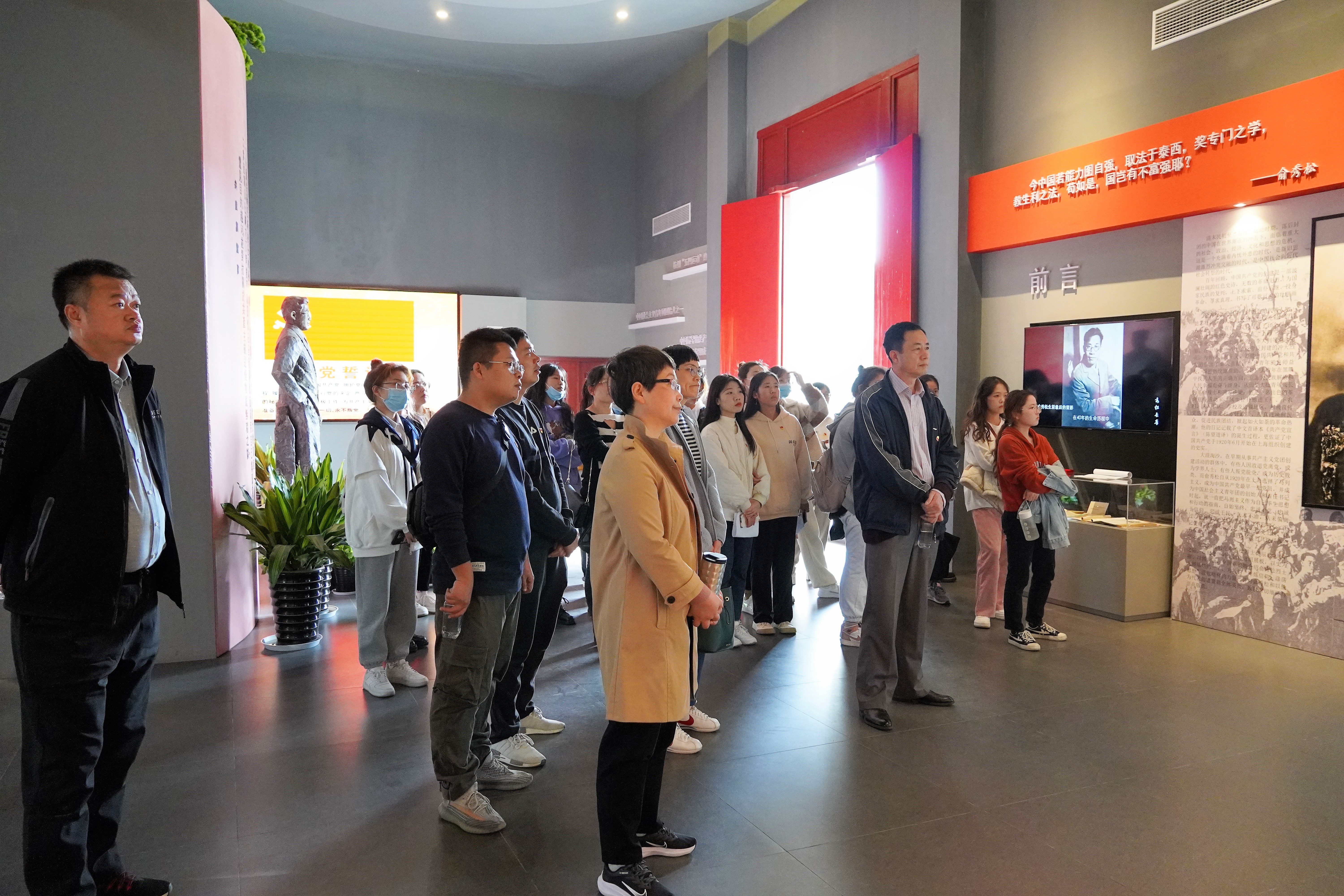 图二:各位党员认真聆听讲解员讲解俞秀松烈士的故事