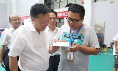 在迎新期间,校党委书记汪俊昌、党委副书记唐和祥在校长办公室负责人的陪同下视察迎新工作。汪俊昌书记实地到我分院迎新现场进行慰问,分院学工办主任为在场领导进行报到情况的详细介绍,校领导对我分院组织的时光明信片活动和前期准备工作做了充分肯定与高度评价,极大地鼓舞了广大迎新工作人员和志愿者们的工作热情。