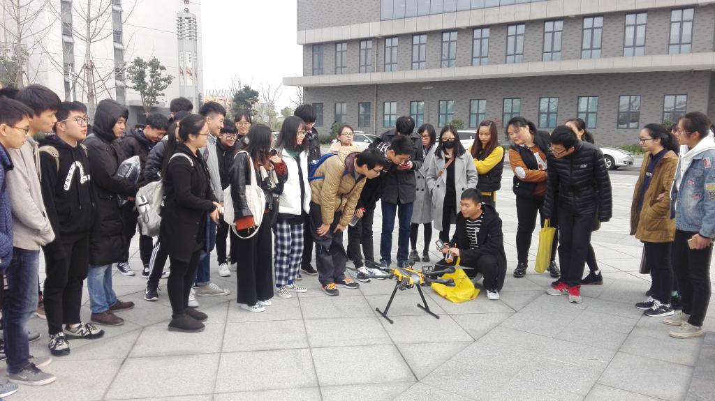 实践课开始,李飞翔技术师为同学们讲解了无人机操作要点和注意事项,并解答有关操作的疑惑。接着,李技术师为同学们带来了无人机起飞、转向、移动、降落的演示,同学们踊跃参加此次实践,现场氛围非常热烈,非常融洽,不少同学表现出对无人机的浓厚的兴趣。