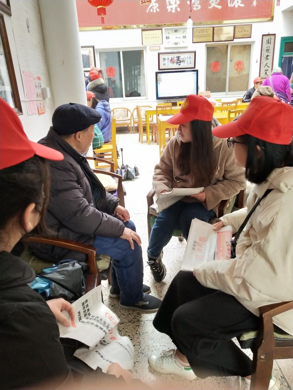 志愿者们陪老人们读报、用生动的讲解帮助老人了解时事新闻,解读“两个一百年”奋斗目标,共享实现中国梦的时代进程,帮助老人更清楚的了解国家的发展方向。志愿者们用事先准备的材料重点解读十九大以来的新政策,更贴合老人的生活实际,用通俗易懂的语言使老人们能够更好地理解养老政策,使他们对以后的生活更加放心。老人们听完后,对国家颁布的政策连连称好。随后,志愿者陪老人们拉家常,关心与温暖的话题也逗得老人们频频露出笑颜。老人们忆苦思甜和志愿者们分享了他们的生活经历,述说着改革开放后的生活的变化,表示在中国共产党的领导下,他们的生活水平也在不断地提高,以前吃不饱穿不暖,而现在生活惬意,志愿者们感触很深,更深感新时代青年一代的责任与担当。临行前,志愿者们帮助老人们打扫卫生,希望他们能够有个更加舒适的居住环境。