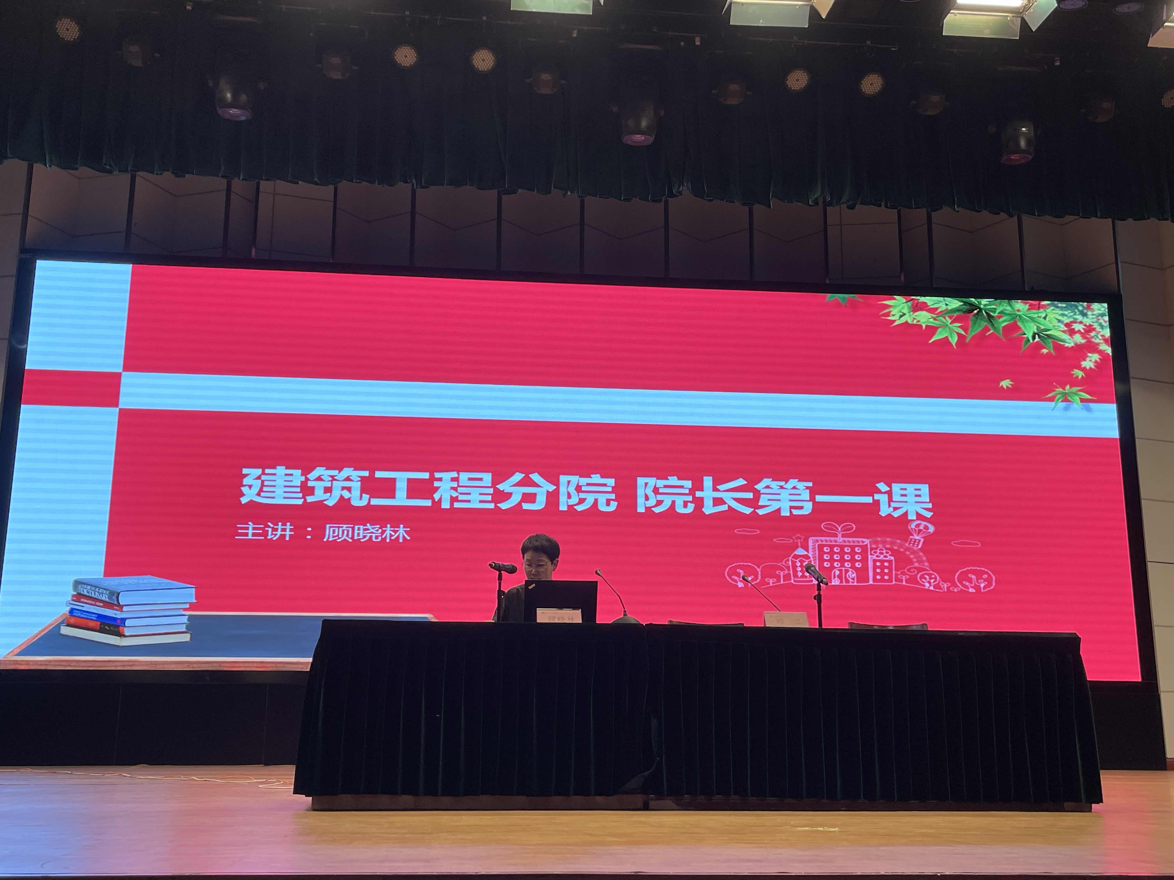 近日,建筑工程分院于举办了令人期待已久的院长第一课,旨在开启一场全新的教育探索之旅。本次活动由顾晓林院长为主讲,分院领导班子,各教研室主任,教职工代表,新生班主任,辅导员,全体新生积极参与,全场座无虚席。顾院长用生动亲和的话语为画笔,为我们勾勒了一幅美好的大学生活画卷,在这里,美好和忧患同在,机遇和挑战并存!