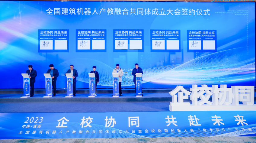 会议现场有来自全国各地的近280名嘉宾代表,共同探讨智能建造技术行业产教融合新路径,共话建筑机器人产业发展新方向,携手打造产教融合共同体。共同体将以人才培养、技术攻关、资源建设为重点任务,加强智能建造行业政行校企合作,实现资源共享和优势互补,全面推动产学研深度融合,支撑智能建造行业高质量发展。