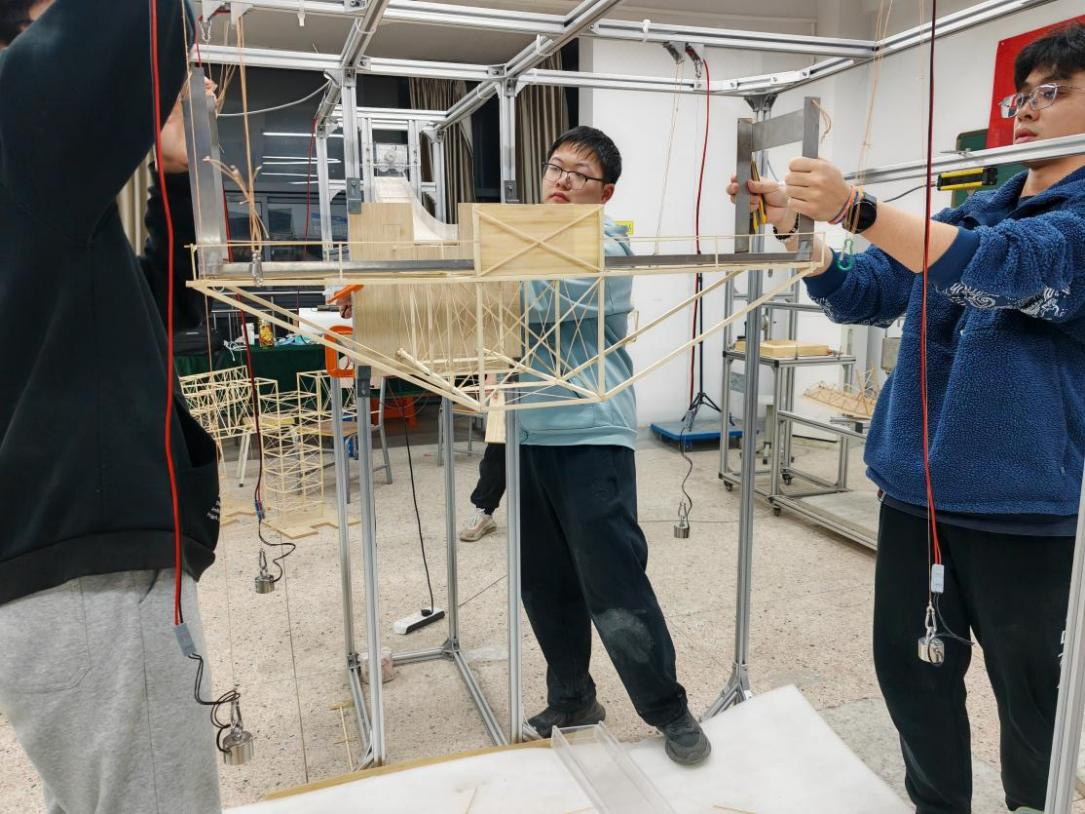 参赛选手在赛前做了充分准备,经过学院结构建模协会的培训,基本掌握了参赛所需的知识与技能。凭借丰富知识储备以及平时的练习,选手们结合赛题能将自己的想法转为现实,设计出各具特色的观景平台结构模型。经个两小时的激烈角逐,裁判方对各组结果进行了模型展示与加载测验,并根据加载重量等进行计算排名。最终取一等奖1组,二等奖2组,三等奖6组,比赛获奖名单如下: