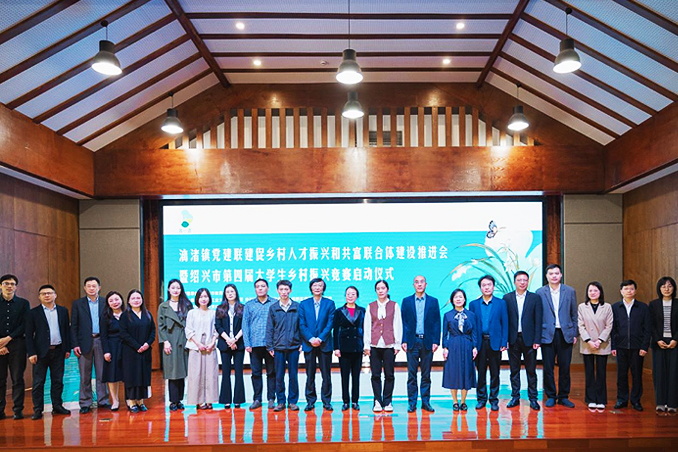 4月26日,漓渚镇党建联建促乡村人才振兴和共富联合体建设推进会暨绍兴市第四届大学生乡村振兴竞赛启动仪式正式开幕,柯桥区副区长沈琴梅、柯桥区政协副主席王茂荣、绍兴市教育局高教处王海庆、绍兴文理学院商学院党委副书记、院长王华锋、浙江工业大学之江学院副院长潘海涵、学院党委副书记、纪委书记俞国芬等领导出席活动。