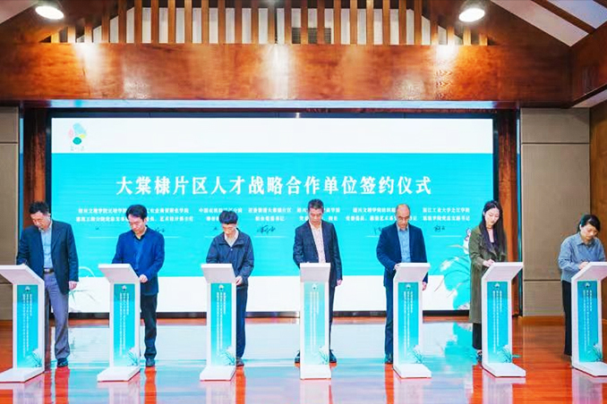 本次活动中建筑工程分院党总支与花香漓渚大棠棣片区联合党委、浙江工业大学之江学院建筑学院党总支等7家单位共同签署大棠棣片区人才战略合作,旨在进一步促进分院师生结合地方发展服务地方乡村振兴的深度和广度。活动现场,俞国芬副书记代表学院与与会领导共同启动绍兴市第四届大学生乡村振兴竞赛。