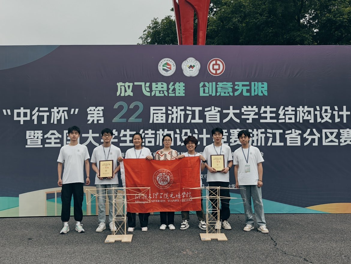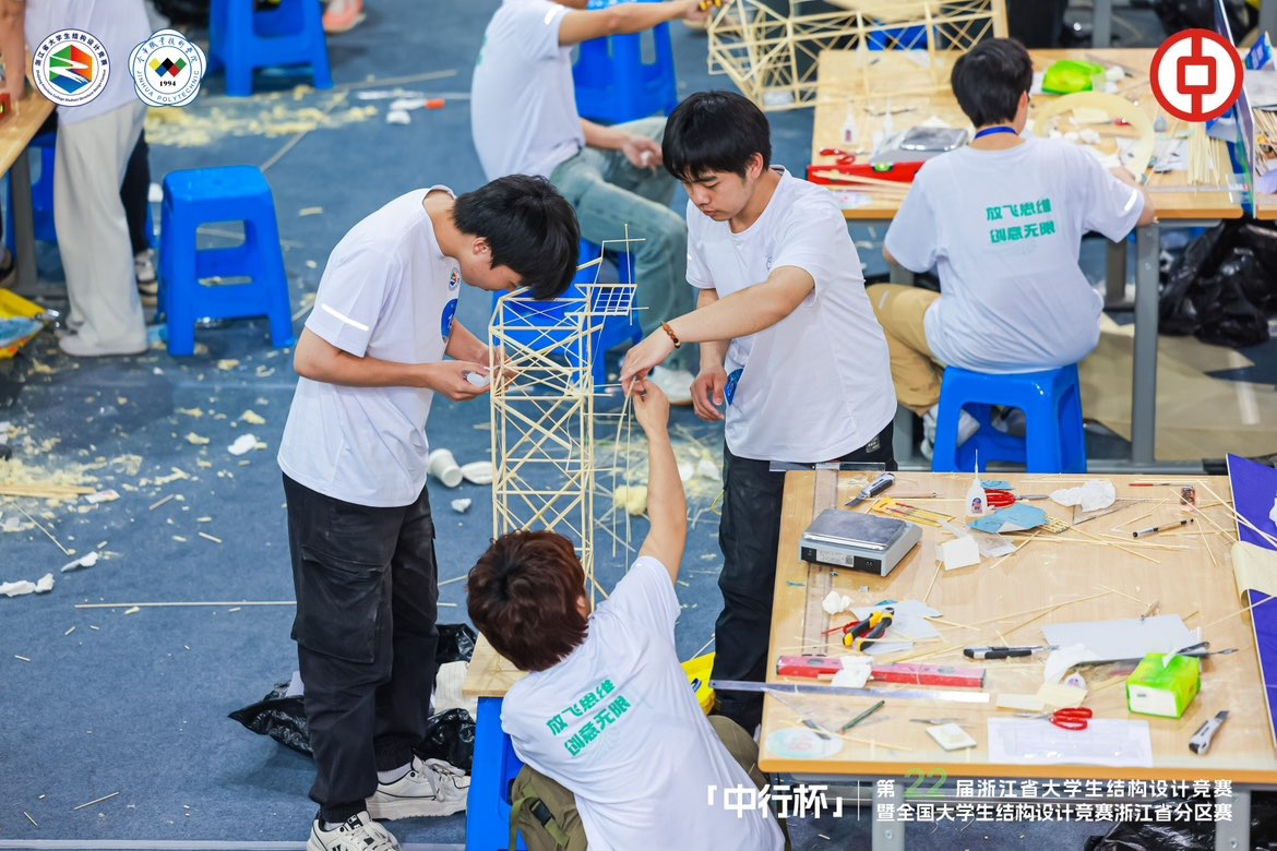 5月10日至12日,浙江省“中行杯”第二十二届大学生结构设计竞赛暨全国大学生结构设计竞赛浙江省分区赛在金华职业技术学院学院举行。来自省内48所高校的100支代表队参加比赛。经过为期三天的激烈比拼,我院学生作品“米饭叁号”(参赛学生:土木工程2202班李鲁洁、2201班陈柏仁、肖志远,指导老师:于周平、钱金权)获省一等奖,“守望稻香”(参赛学生:土木工程2202班柳舒昀、2102班黄信智、2321班秦秋伟,指导老师:于周平、顾晓林)获省二等奖。