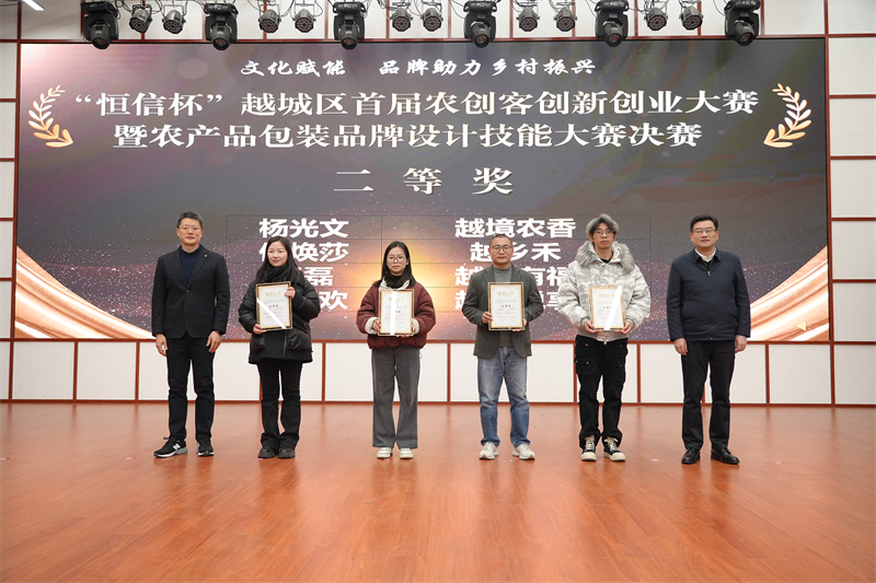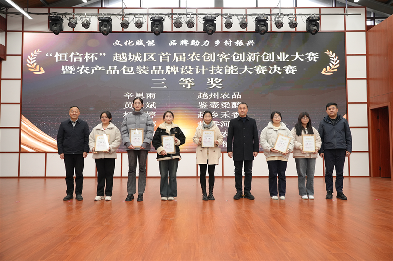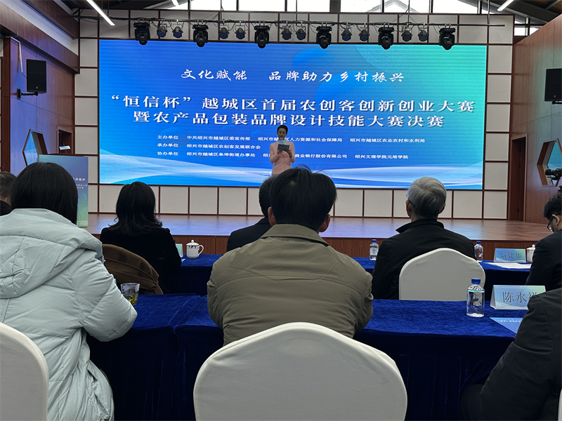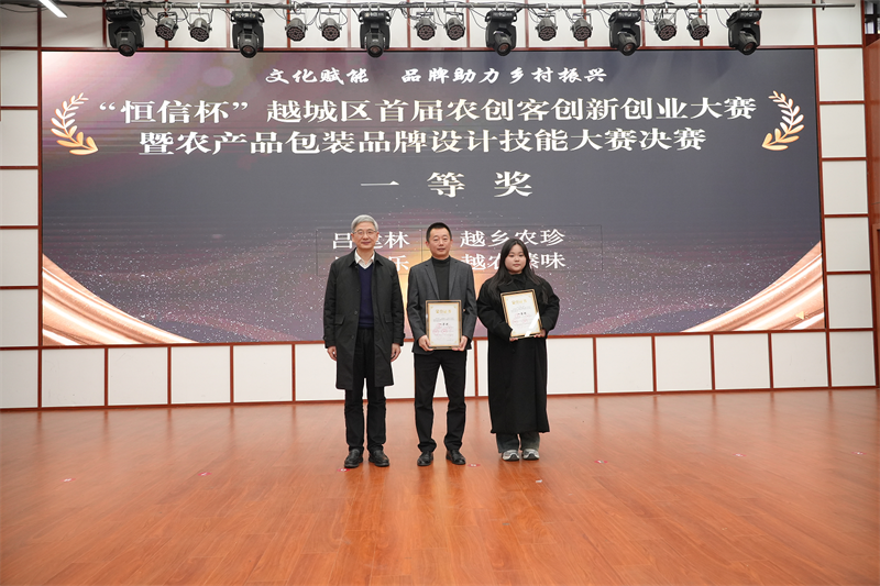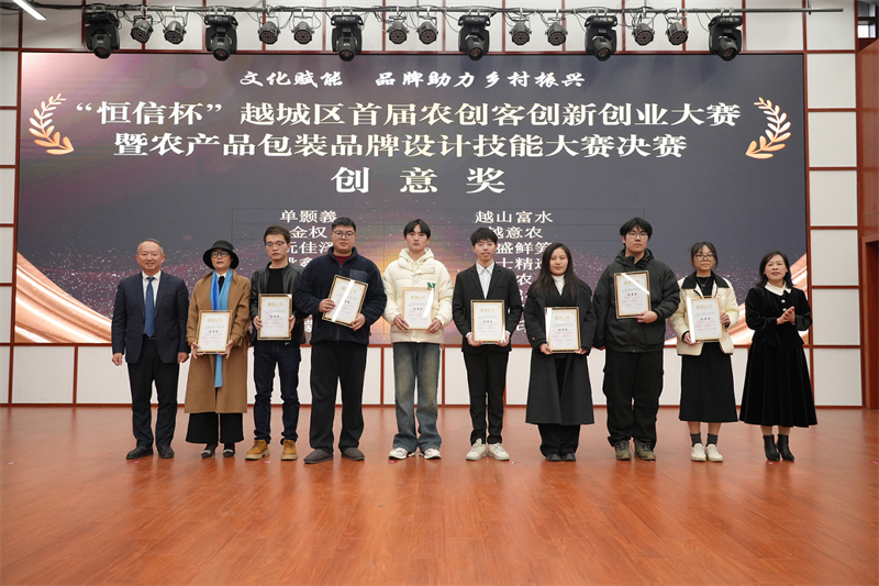 近日,“恒信杯” 越城区首届农创客创新创业大赛暨农产品包装品牌设计技能大赛决赛在皋埠街道坝头山村新文化大礼堂举行。此次大赛由越城区委宣传部等部门主办,元培学院作为协办单位深度参与其中,充分发挥师生力量,为乡村产业升级注入强大动力,展现了积极的社会担当与专业贡献。学院党委副书记、纪委书记俞国芬应邀参加并为获奖团队颁奖,建筑工程分院相关负责人和师生代表参加本次活动。