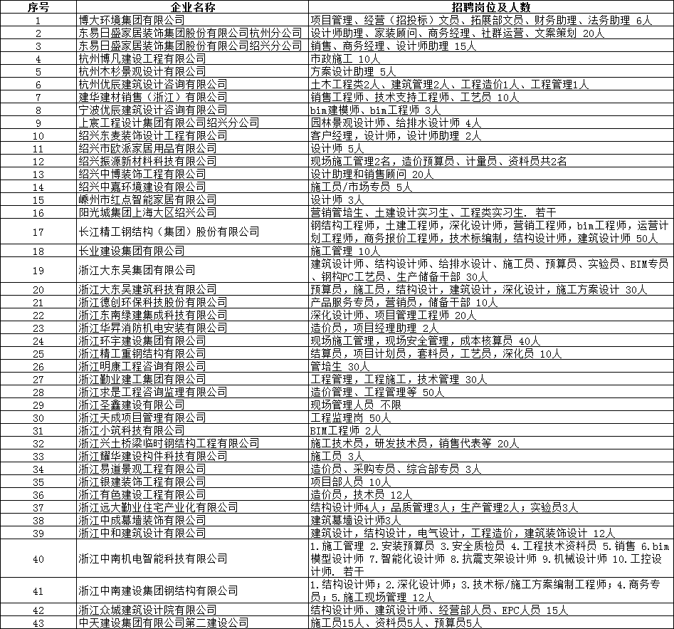 建筑工程分院 2021 届毕业生专场招聘会参会企业名单